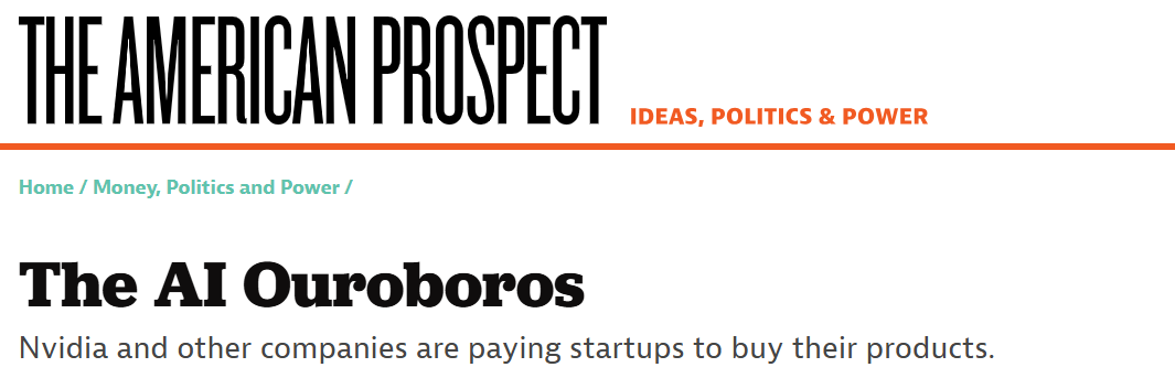 In fact, Nvidia is the king of this kind of deal, although $100 billion for a single company certainly stands out. It regularly makes equity investments in AI startups that are also its customers. Like the mythical ouroboros, the snake that eats itself, the AI economy turns equity investments from Nvidia and other companies into purchases of their own products, effectively self-funding their own record revenues. So what happens when this recirculation cant cover for the lack of massive amounts of available cash for the planned AI buildout?