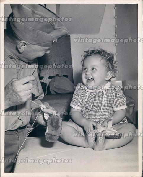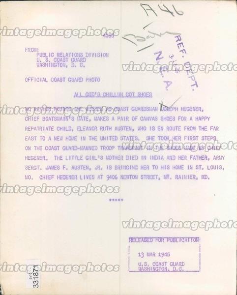 A few years ago I saw this photo online of Coast Guardsman Joseph Hegener making me my first pair of shoes aboard the ship. I bought the photo. The "vintage image photos" stamp isn't on the actual photo.