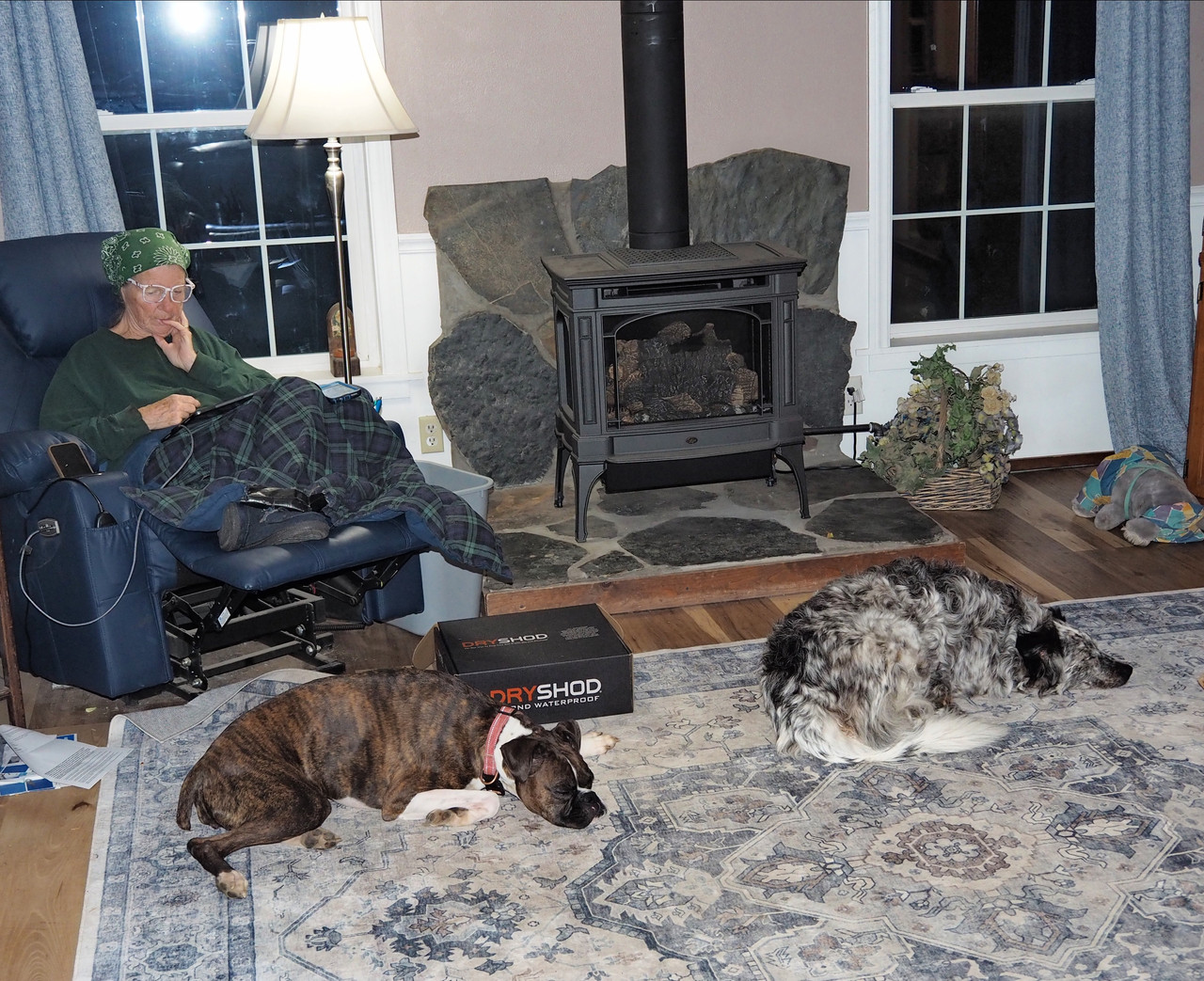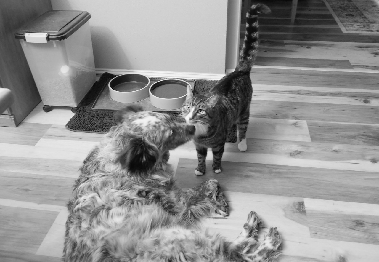 Our daughter's Boxer Pepper's here for a couple days. Shadow tolerates her.