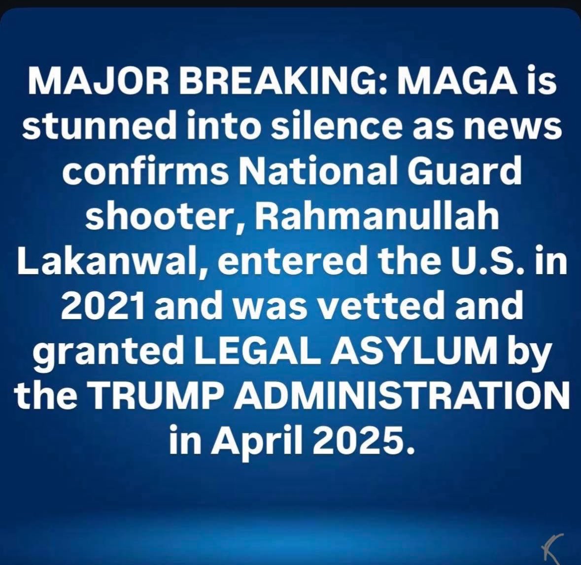 (2,610 posts)Rahmanullah Lakanwal, an Afghan national, arrived in the U.S. in September 2021 as part of "Operation Allies Welcome," a program initiated by the Biden administration following the U.S. withdrawal from Afghanistan.